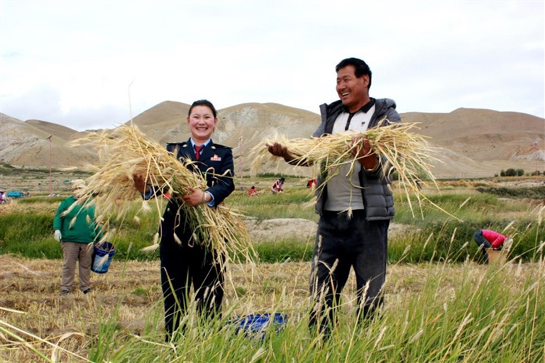 普蘭縣稅務(wù)干部走進(jìn)田間地頭,助力秋收工作。