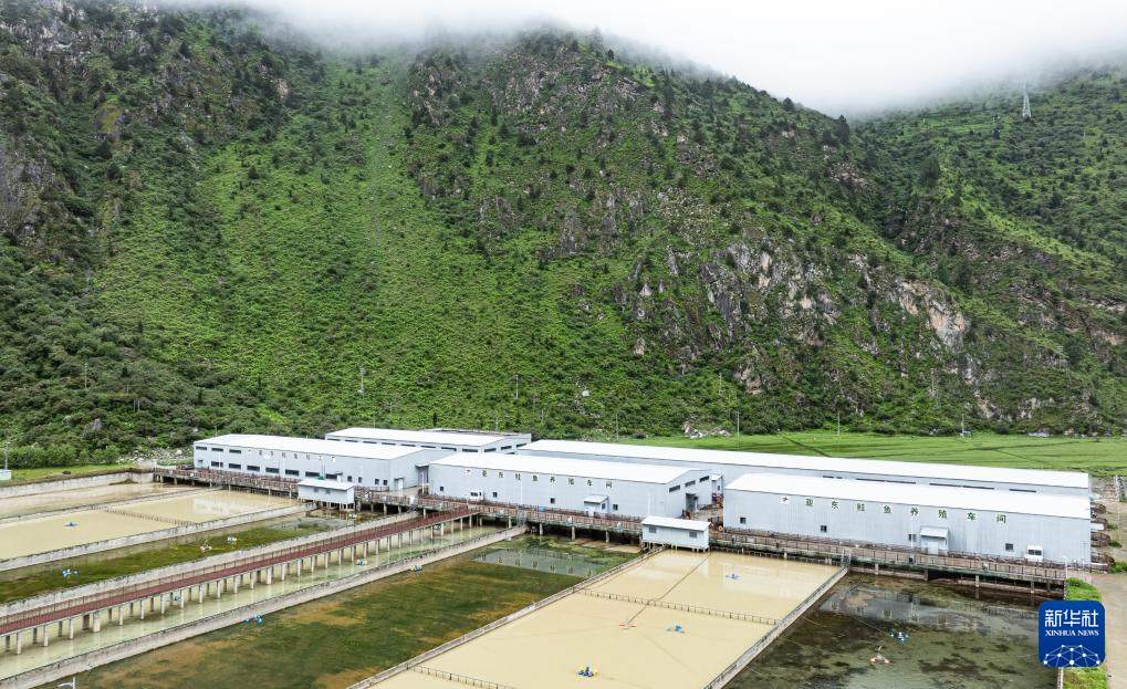 這是西藏高峰生態(tài)科技有限責(zé)任公司的亞?wèn)|鮭魚(yú)養(yǎng)殖產(chǎn)業(yè)園(6月19日攝,無(wú)人機(jī)照片)。新華社記者 丁增尼達(dá) 攝