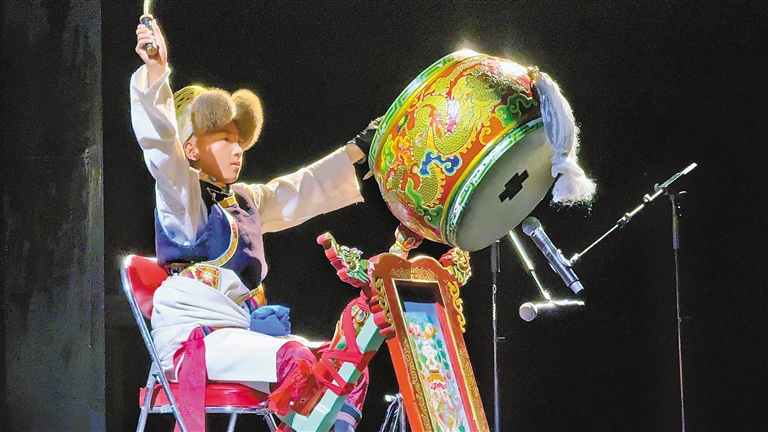 扎西多吉從小學(xué)一年級(jí)起便跟隨老師學(xué)藝,憑借扎實(shí)功底曾在“中國(guó)少兒戲曲小梅花薈萃”活動(dòng)中獲得“小梅花”稱號(hào)?!八竟氖遣貞虻撵`魂節(jié)奏,每一次擊打都要帶著對(duì)傳統(tǒng)文化的敬意?!边@位14歲少年的專注與執(zhí)著,不僅收獲了藝術(shù)成就,更錘煉出沉穩(wěn)大氣的品格。母親措姆欣慰地表示:“看著孩子在藏戲?qū)W習(xí)中成長(zhǎng),是最幸福的事。”