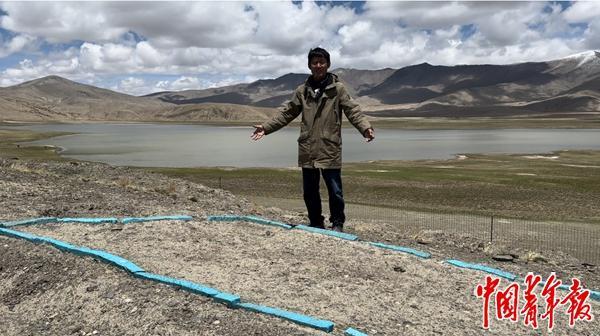 夏格旺堆在瑪不錯遺址。中青報·中青網(wǎng)記者 張玘云/攝