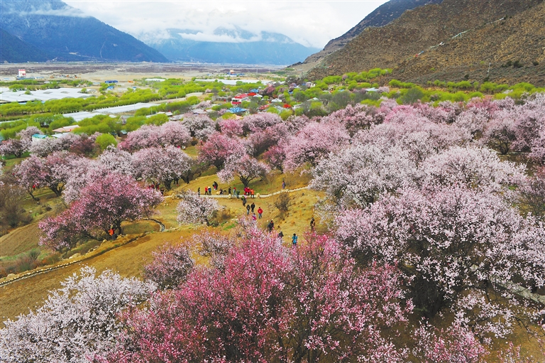 嘎拉村坐落在美麗的尼洋河畔,有著西藏“桃花第一村”的美譽。每年三四月份,全村270余畝的野桃花競相綻放,吸引眾多游客奔赴這處“世外桃源”。