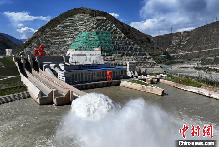 7月9日,航拍巴塘水電站景色。巴塘水電站位于四川省巴塘縣與西藏自治區(qū)芒康縣交界處的金沙江上游,是國家“十四五”規(guī)劃重大工程之一。電站共安裝3臺25萬千瓦混流式水輪發(fā)電機組,總裝機容量75萬千瓦,正常蓄水位2545米,總庫容1.42億立方米。(無人機照片)中新社記者 王磊 攝