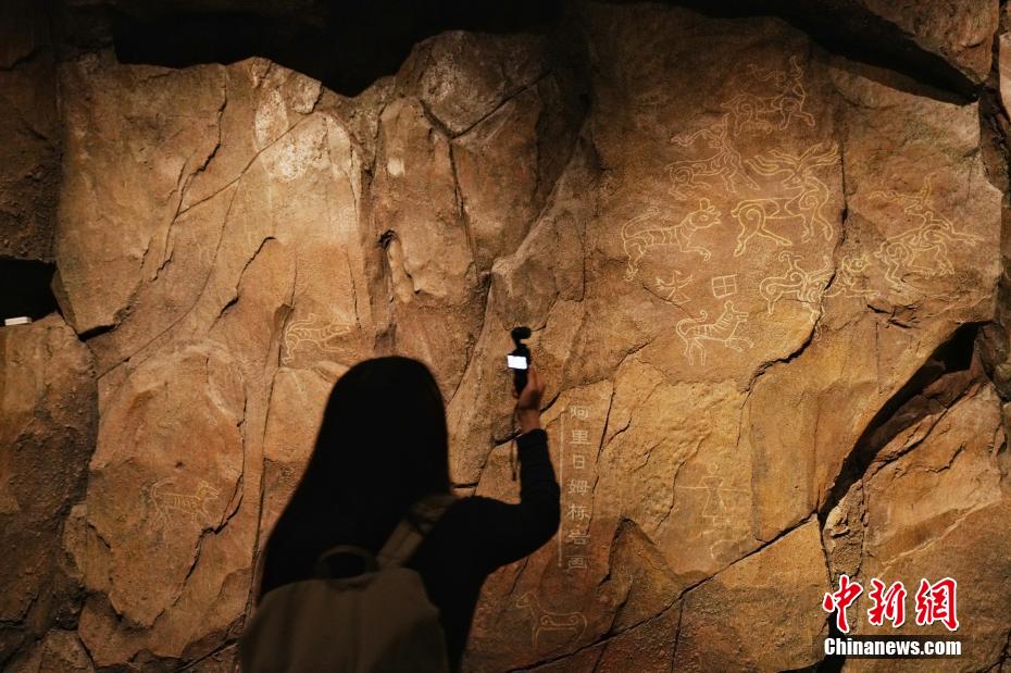 7月15日,在位于西藏拉薩的西藏博物館,觀眾拍攝復原的阿里日姆棟巖畫。據(jù)了解,西藏博物館設有基本陳列《雪域長歌—西藏歷史文化展》《離太陽最近的人—西藏民俗文化展》,充分展示西藏地區(qū)歷史發(fā)展進程與文化面貌。中新社記者 張祥毅 攝