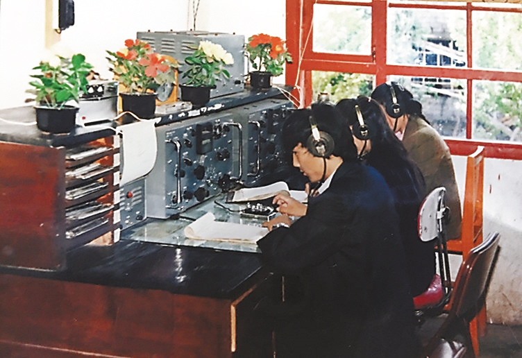 20世紀70-80年代業(yè)務人員通過莫爾斯電臺傳輸氣象資料。昌都市氣象局供圖