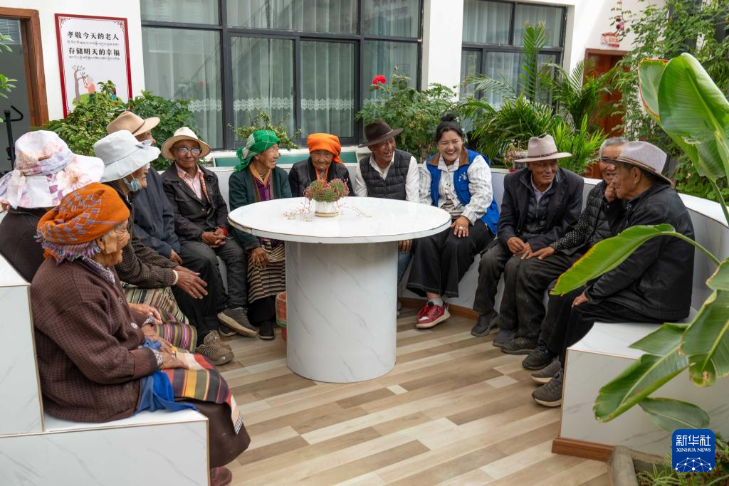 7月17日,老人們?cè)谌写逍腋sA站日間照料室聊天。新華社記者 旦增尼瑪曲珠 攝