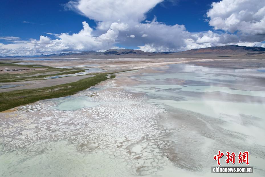 7月20日,航拍西藏阿里地區(qū)革吉縣鹽湖鄉(xiāng)境內(nèi)的鹽湖。一千多年前,阿里地區(qū)有50多家駐扎的鹽幫,將自然鹽用羊馱牛背邊放牧邊運(yùn)輸?shù)姆绞剑\(yùn)送到普蘭、日喀則、印度、尼泊爾等地,并用以物易物的方式換回青稞、磚茶、布料等日常生活所需的物品,從而孕育了遠(yuǎn)負(fù)盛名的“鹽羊古道”傳奇。近年來(lái),當(dāng)?shù)亻_(kāi)辦粗鹽巴加工廠、打造“鹽羊古道”旅游品牌等方式,使千年“鹽羊古道”煥發(fā)新生機(jī)。(無(wú)人機(jī)照片)中新社記者 張祥毅 攝
