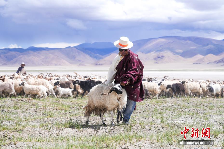 7月20日,在西藏阿里地區(qū)革吉縣鹽湖鄉(xiāng),牧民從羊群中牽引一只將要馱負(fù)鹽袋的羊。一千多年前,阿里地區(qū)有50多家駐扎的鹽幫,將自然鹽用羊馱牛背邊放牧邊運(yùn)輸?shù)姆绞剑\(yùn)送到普蘭、日喀則、印度、尼泊爾等地,并用以物易物的方式換回青稞、磚茶、布料等日常生活所需的物品,從而孕育了遠(yuǎn)負(fù)盛名的“鹽羊古道”傳奇。近年來(lái),當(dāng)?shù)亻_(kāi)辦粗鹽巴加工廠、打造“鹽羊古道”旅游品牌等方式,使千年“鹽羊古道”煥發(fā)新生機(jī)。中新社記者 張祥毅 攝