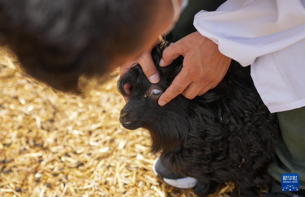 邊壩縣黑山羊養(yǎng)殖基地的工作人員在檢查黑山羊羊羔健康狀況(7月20日攝)。新華社記者 晉美多吉 攝