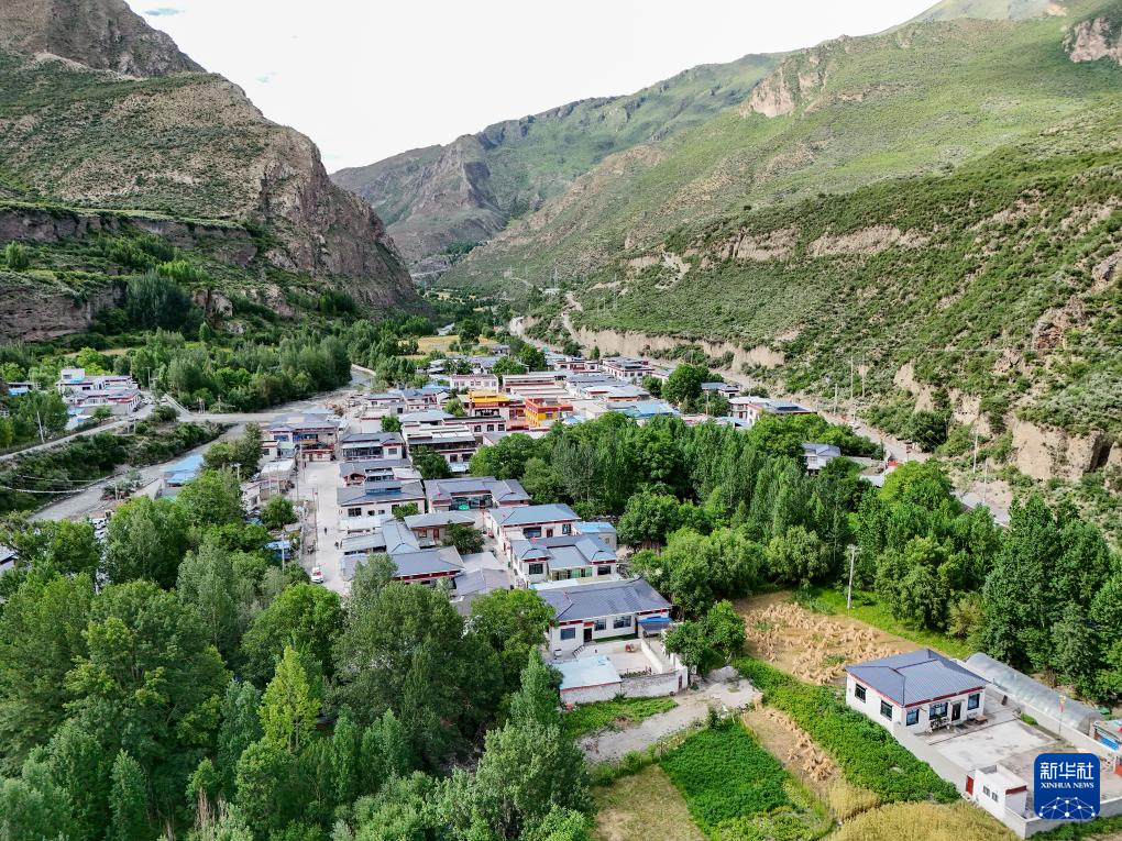 這是7月21日拍攝的西藏林芝市朗縣仲達鎮(zhèn)拉丁雪村(無人機照片)。新華社記者 李鑫 攝