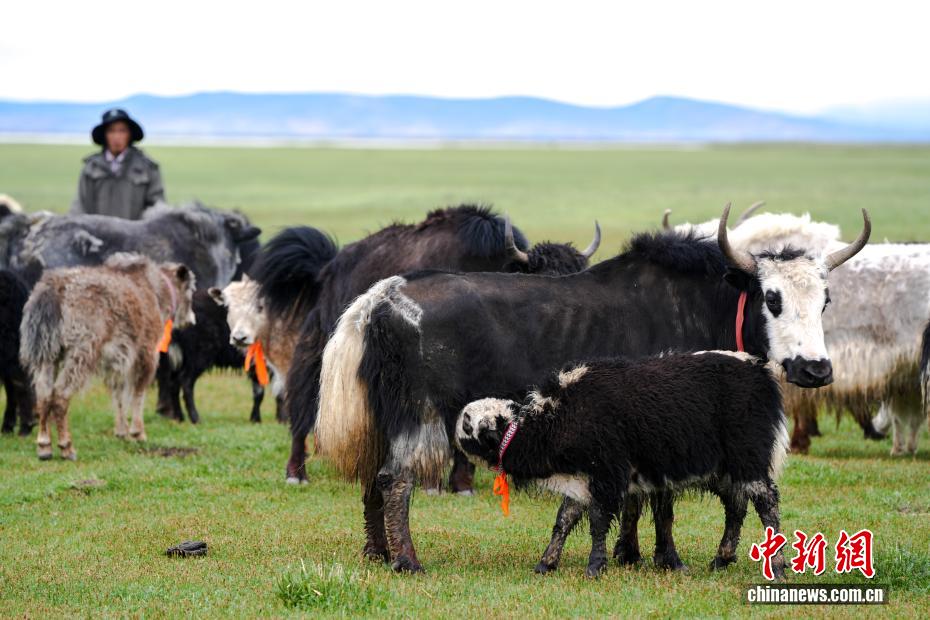 7月22日,在西藏阿里地區(qū)普蘭縣霍爾鄉(xiāng)瑪旁雍錯濕地,一頭牦牛在喂養(yǎng)牛犢。為實現(xiàn)更大的經(jīng)濟效益,霍爾鄉(xiāng)近年來探索建立牦牛養(yǎng)殖專業(yè)合作社,按當(dāng)?shù)刈匀粭l件合理分配牦牛放牧地點,并將牛奶進行加工銷售,2023年該合作社的年總收入達到60余萬元人民幣,帶動牧民人均增收2萬余元人民幣。中新社記者 張祥毅 攝