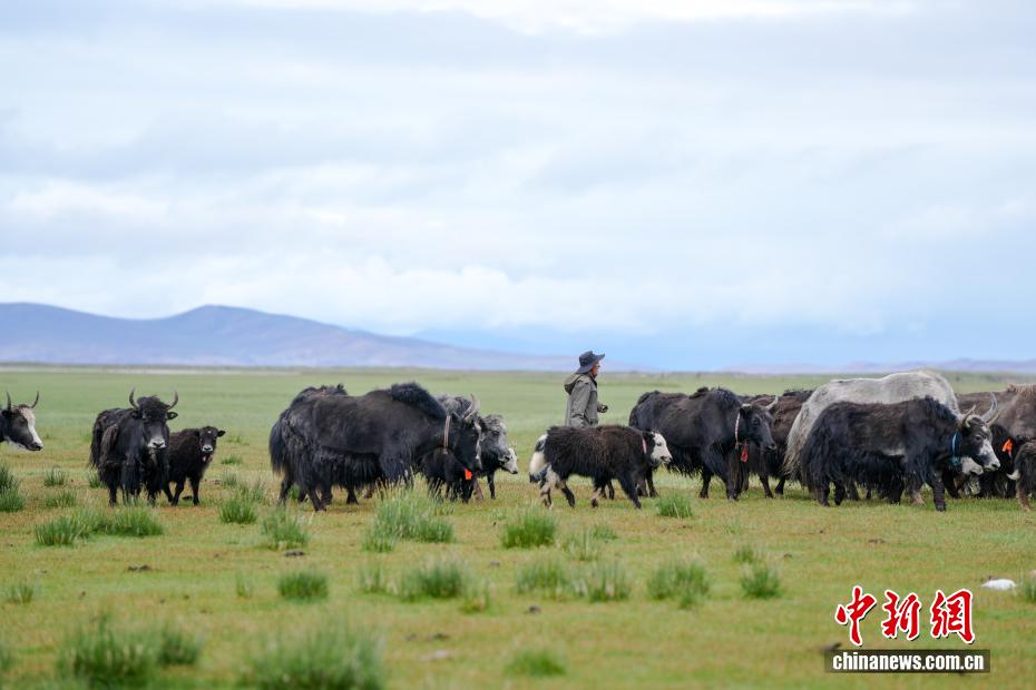 7月22日,在西藏阿里地區(qū)普蘭縣霍爾鄉(xiāng),牧民放牧牦牛。為實現(xiàn)更大的經(jīng)濟效益,霍爾鄉(xiāng)近年來探索建立牦牛養(yǎng)殖專業(yè)合作社,按當(dāng)?shù)刈匀粭l件合理分配牦牛放牧地點,并將牛奶進行加工銷售,2023年該合作社的年總收入達到60余萬元人民幣,帶動牧民人均增收2萬余元人民幣。中新社記者 張祥毅 攝