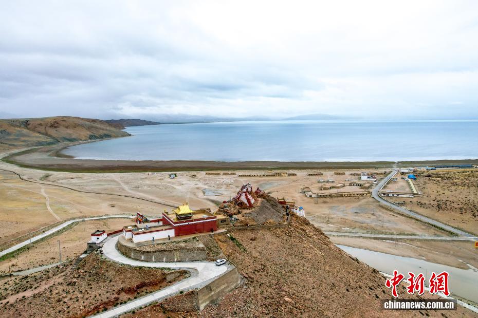 7月22日,航拍拉昂錯夏日風(fēng)光?,斉杂哄e與拉昂錯位于西藏阿里地區(qū)普蘭縣境內(nèi),兩湖僅有一堤之隔,卻擁有不同的地理特征和咸淡水之分,因而分別被譽為“圣湖”與“鬼湖”。(無人機照片)中新社記者 張祥毅 攝