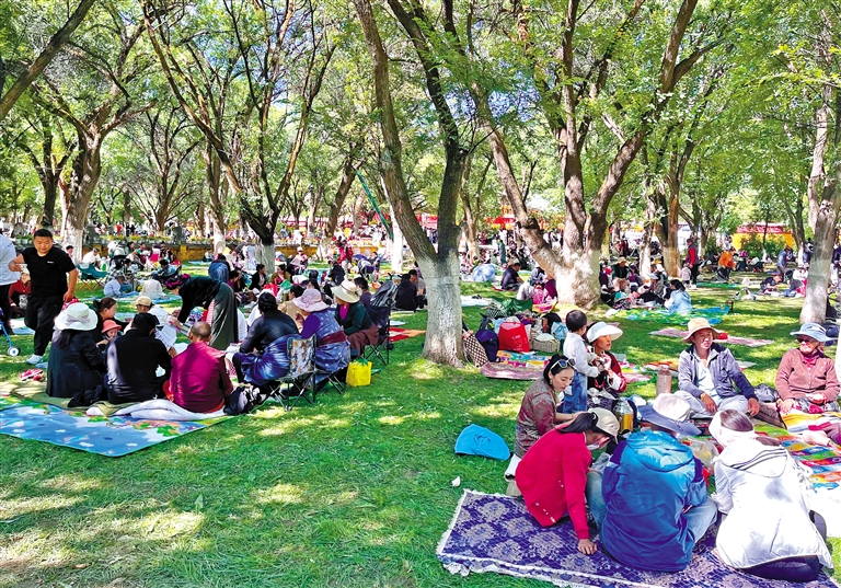 時下,又是一年中高原最美的夏日,陽光明媚、草木蔥蘢、果蔬飄香,正是各林卡游人旺季。每到周末和節(jié)假日,人們擇一隅有綠林、草地、溪水流淌的地方,處處樂享夏日時光。
