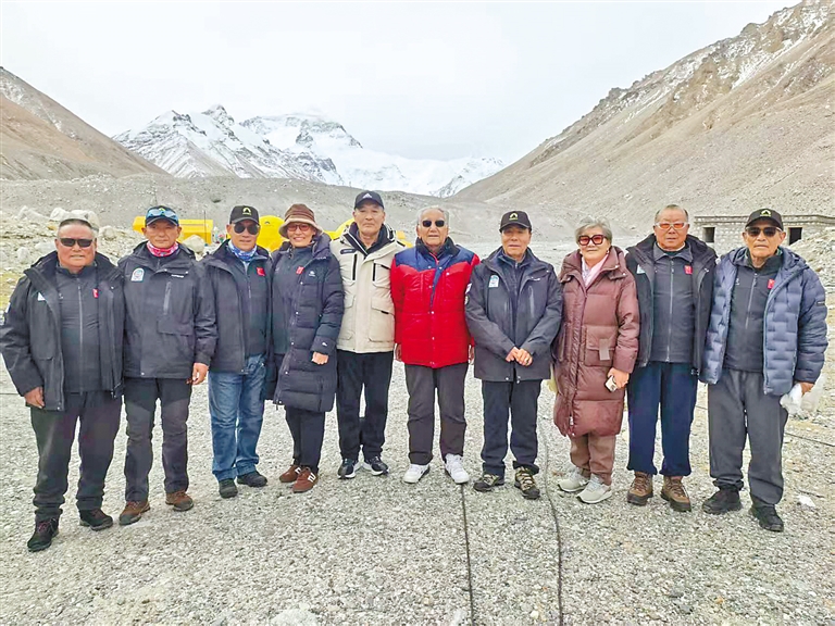 2025年5月6日,登山勇士們參加紀念中國人再登珠穆朗瑪峰50周年系列活動之“登山勇士緬懷活動”時合影。記者 鄭璐 攝(除本圖外的其他圖片均由西藏自治區(qū)登山隊提供)