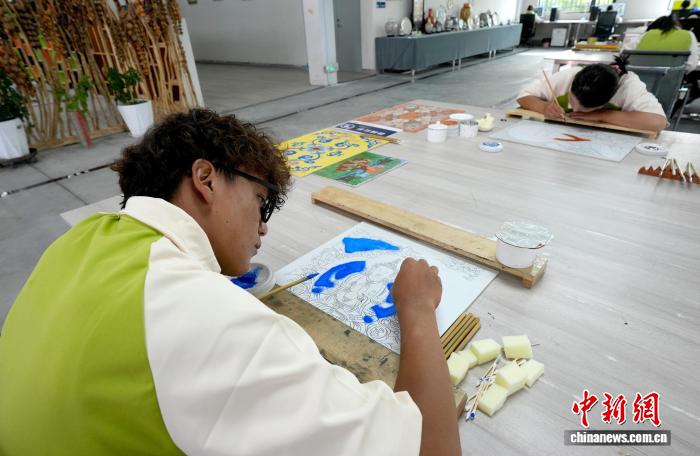 8月6日,拉薩市蓮華之寶中華藏瓷文化旅游體驗(yàn)園景區(qū)里,工作人員正在陶瓷繪畫。蓮華之寶中華藏瓷文化旅游體驗(yàn)園景區(qū)集展覽、銷售與文化體驗(yàn)于一體,通過與高校開展校企合作等方式,將唐卡繪畫藝術(shù)與陶瓷工藝結(jié)合,傳播優(yōu)秀傳統(tǒng)文化。中新社記者 李林 攝