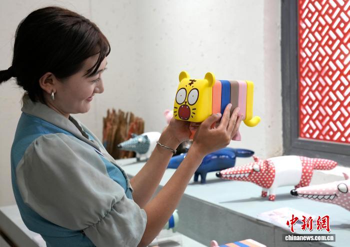8月6日,拉薩市蓮華之寶中華藏瓷文化旅游體驗(yàn)園景區(qū)里,工作人員展示卡通陶瓷工藝制品。蓮華之寶中華藏瓷文化旅游體驗(yàn)園景區(qū)集展覽、銷售與文化體驗(yàn)于一體,通過與高校開展校企合作等方式,將唐卡繪畫藝術(shù)與陶瓷工藝結(jié)合,傳播優(yōu)秀傳統(tǒng)文化。中新社記者 李林 攝
