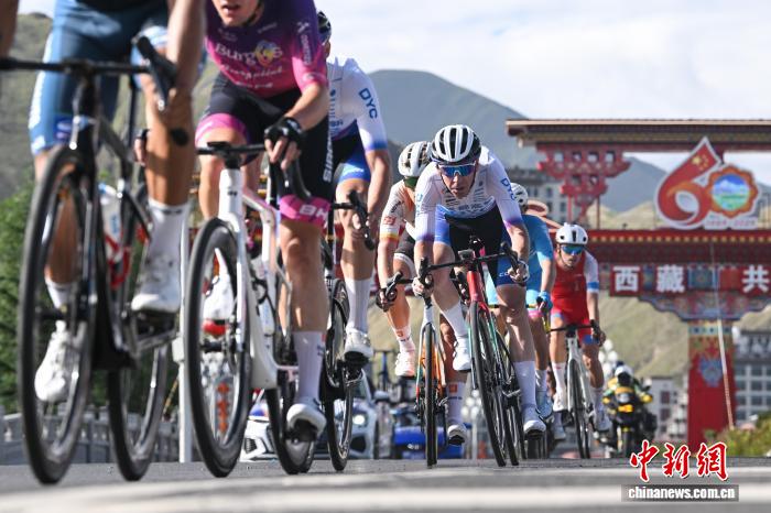 8月9日,2025中國西藏第六屆跨喜馬拉雅國際公路自行車極限賽拉薩賽段(第三賽段)完賽。本賽段為拉薩繞圈賽,起點拉薩市西藏博物館,終點布達拉宮廣場,全程約92.53公里。圖為參賽車手在比賽中。中新社記者 貢嘎來松 攝