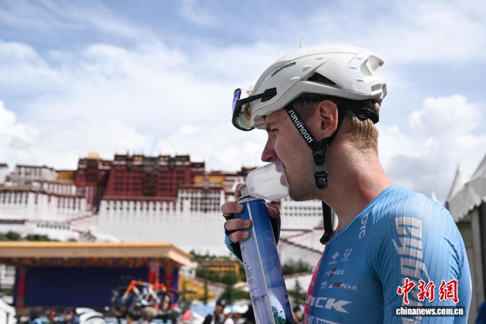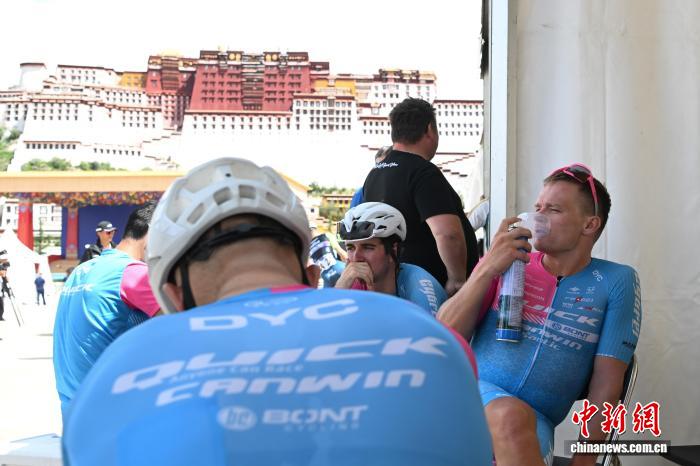圖為完賽后參賽車手在布達拉宮廣場吸氧休息。中新社記者 貢嘎來松 攝