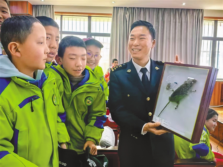 “同學們,這個圓柱形的赤褐色小蟲子,大家知道是什么嗎?它可是木材的‘隱形殺手’……”近期,在拉薩市第七中學課堂上,海關關員通過實物標本展示,向120余名師生生動講解檢疫性有害生物雙鉤異翅長蠹的危害。活動現場,海關關員通過展示外來入侵物種標本、講解“異寵”及外來物種入侵危害知識,幫助同學們了解《中華人民共和國生物安全法》等相關法律法規(guī),引導青少年樹立生物安全意識,積極守護生態(tài)安全。