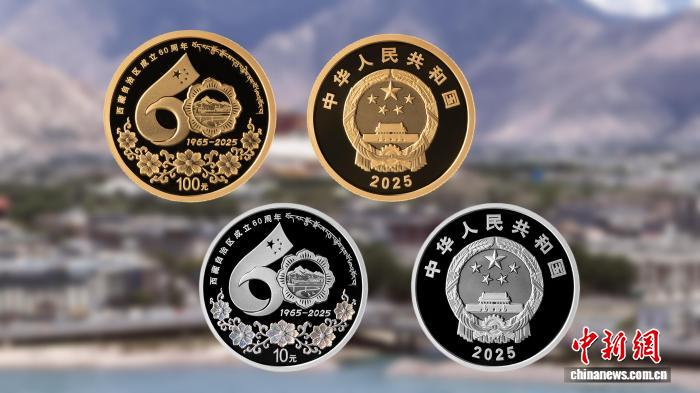 圖為西藏自治區(qū)成立60周年金銀紀念幣樣式。中國人民銀行西藏分行供圖