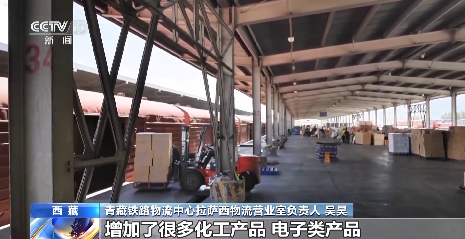 青藏鐵路物流中心拉薩西物流營業(yè)室負責人 吳昊:以前我們這邊到達量還是比較單一的,也就是一些糧食、飲料、建材之類的,現(xiàn)在到達的物品比較多元,增加了很多化工產品、電子類產品。