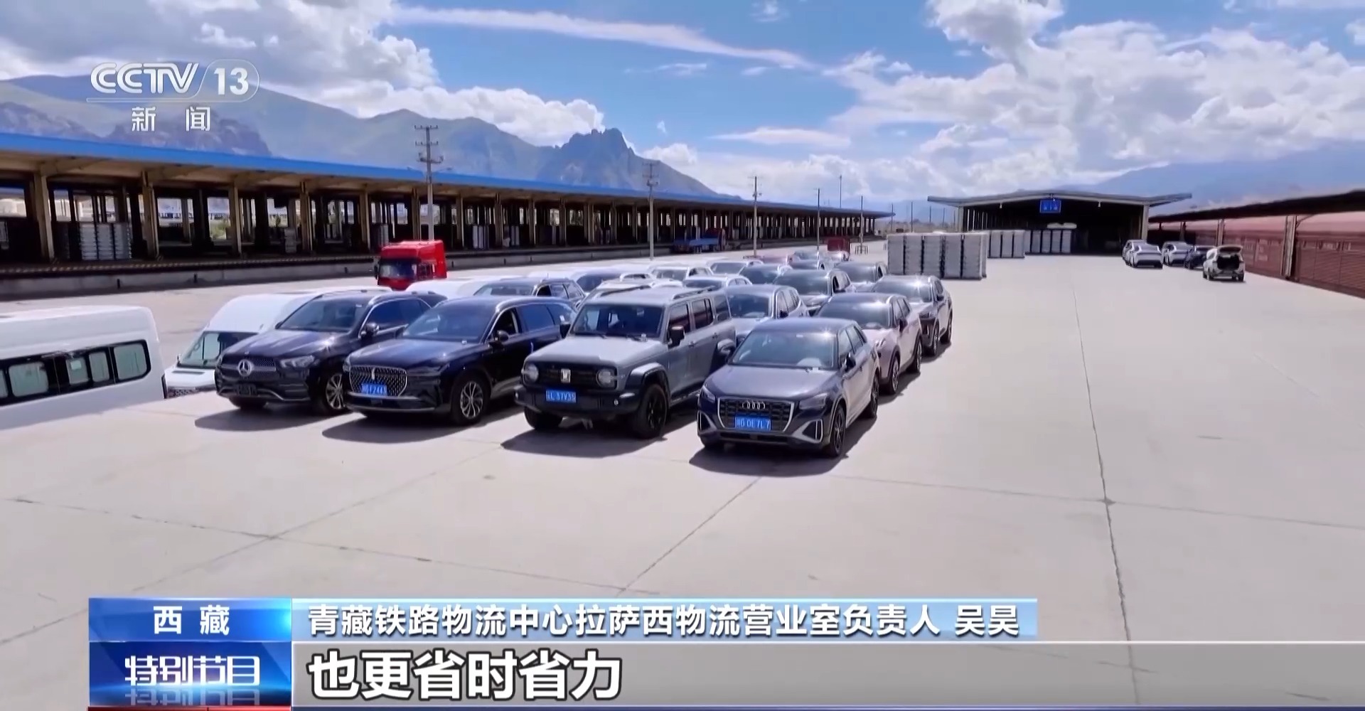 青藏鐵路物流中心拉薩西物流營業(yè)室負責人 吳昊:像這種車型就是我們鐵路為了小汽車運輸?shù)膶iT車型,裝小汽車能達到一百三四十輛。有的朋友喜歡把車輛拖到拉薩以后,開車去周邊玩,也更省時省力。
