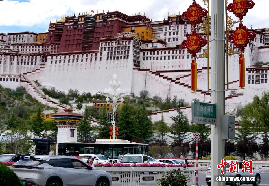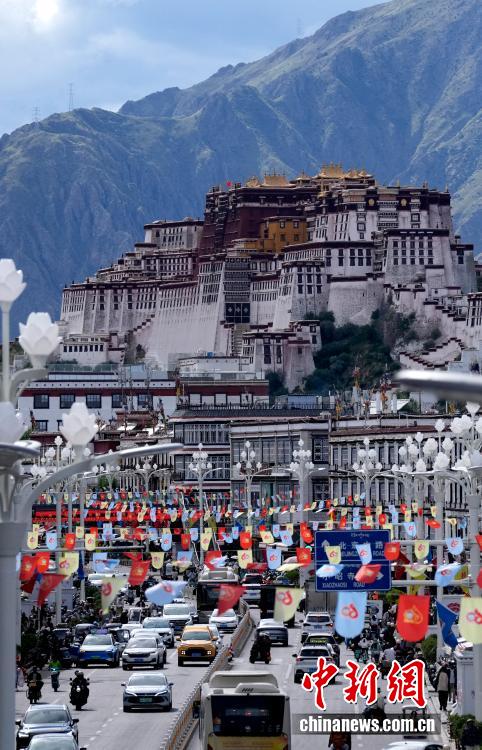 8月19日,隨著西藏自治區(qū)成立60周年慶?;顒优R近,拉薩氛圍濃。拉薩街頭,處處是張燈結彩的盛景,洋溢著一派祥和與歡騰的氛圍。圖為拉薩裝扮一新的街頭。中新社記者 李林 攝