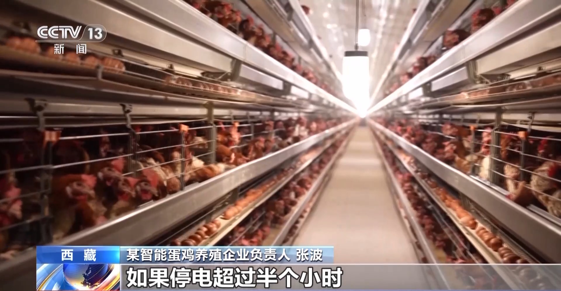 某智能蛋雞養(yǎng)殖企業(yè)負(fù)責(zé)人 張波:我們一棟雞舍是十萬只,這個(gè)廠設(shè)計(jì)規(guī)模是一百萬,如果停電超過半個(gè)小時(shí),我們每一棟雞舍里面的雞都會(huì)全部死掉。我們當(dāng)初(2020年)來這里考察的時(shí)候,電網(wǎng)是比較完善的,我們才會(huì)把廠建到這個(gè)地方。