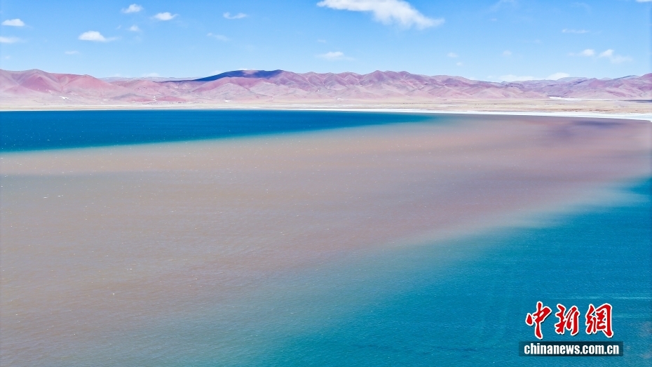 西藏自治區(qū)那曲市安多縣錯那湖,湖水交匯處好似“鴛鴦火鍋”。(無人機照片)中新社記者 馬銘言 攝