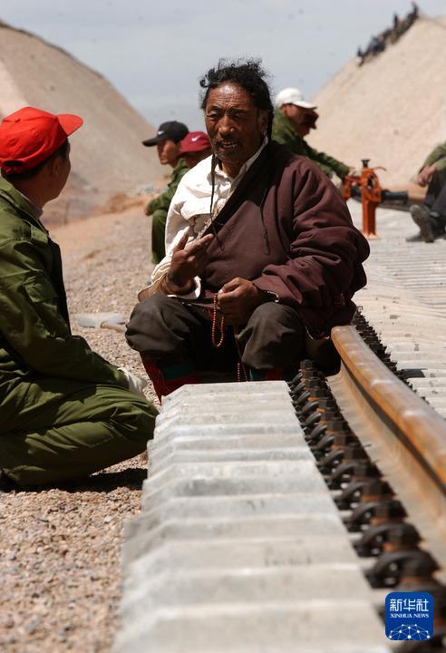 彼時,青藏鐵路的建設工地也成了附近居民最大的關注點。老鄉(xiāng)們來到工地東瞅瞅、西瞧瞧,好奇地摸摸鐵軌,又或者拉上工人們問問這、問問那——盡管很多時候,由于語言不通,他們并不能夠了解對方在說什么。但在家鄉(xiāng)人的臉上,我看到了對未來變化的憧憬,以及對鐵路建成越來越迫切的渴望。