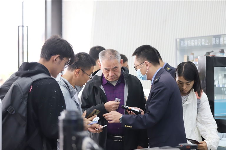 工作人員協(xié)助旅客查看車(chē)次。