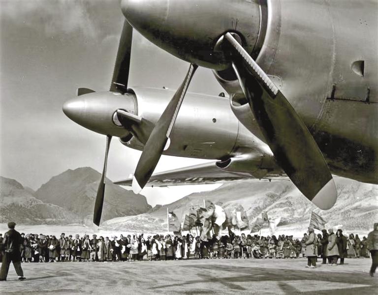 無畏開拓,筑起雪域天路。1955年底,黨中央、國務(wù)院作出開辟北京至拉薩民用航線的重要指示。1956年4月26日,當(dāng)雄草原上建起了簡易跑道;5月26日,韓琳機組駕駛伊爾-12型飛機從北線試航,穿破層層云障,成功降落在雪山環(huán)抱的當(dāng)雄機場,填補了我國高高原飛行的空白;9月5日,歷時118天,西藏第一座機場——當(dāng)雄機場建成。此后的10年間,多次組織試飛。1965年3月1日,民航第一飛行大隊孫權(quán)貴和畢春芳機組駕駛伊爾-18型飛機從北京起飛,次日平穩(wěn)降落當(dāng)雄機場,北京-成都-拉薩航線正式通航,西藏民航波瀾壯闊的發(fā)展篇章就此開啟。