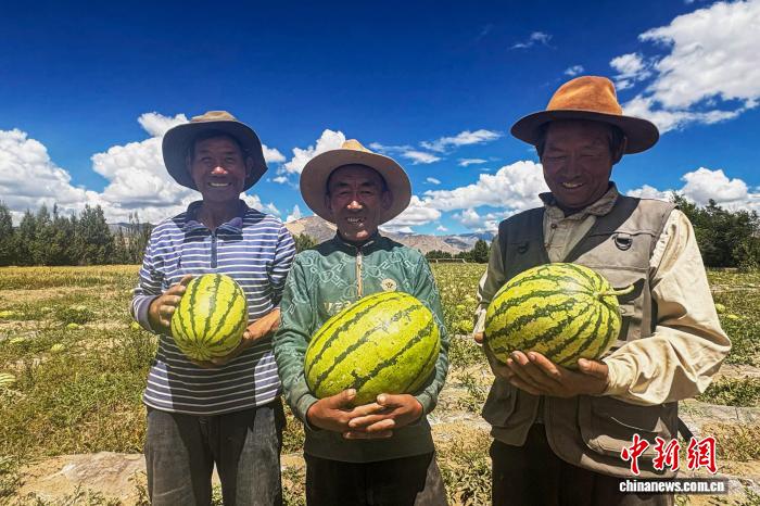 “今年我們村種了17畝露地西瓜,平均畝產(chǎn)約4000斤,僅靠這一項(xiàng),估計年底可以為全村每戶增加現(xiàn)金分紅幾千元(人民幣,下同)?!?月8日,西藏日喀則桑珠孜區(qū)年木鄉(xiāng)羅林村黨支部書記才旺群培介紹,村里的高海拔露地西瓜規(guī)?;N植首次迎來豐收。