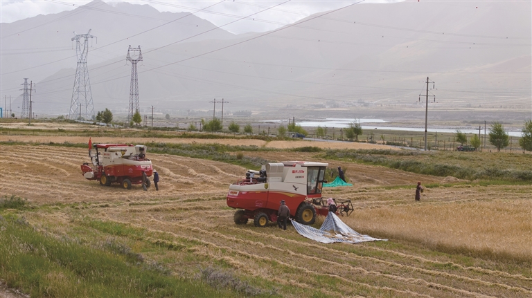 “我家共有37畝農(nóng)田,10畝種小油菜,27畝種青稞?!必暩骂D玉說,小油菜在前兩天已全部收割完畢,每畝產(chǎn)量達300多斤。從今天起,他們開始收割青稞。家里有4個勞動力,要是放在以前,37畝地的秋收得全家上陣忙一個多月,現(xiàn)在有了機械化作業(yè),短短幾天就能完成所有收割工作,既省時又省力。