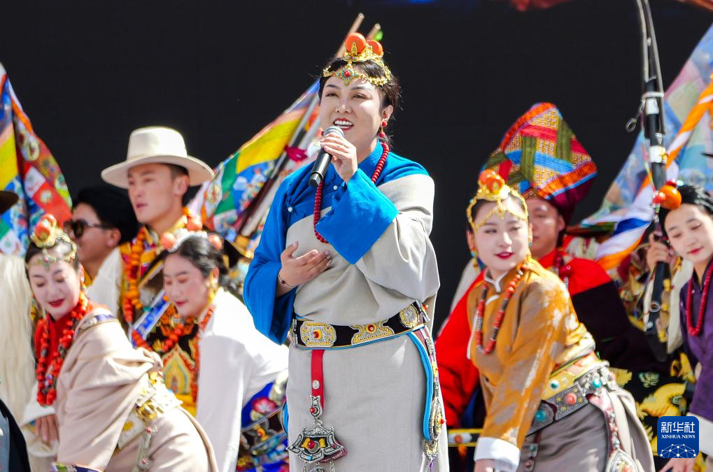 這是9月15日拍攝的開幕式上的女聲獨唱《藏東明珠》。新華社記者 格桑朗杰 攝