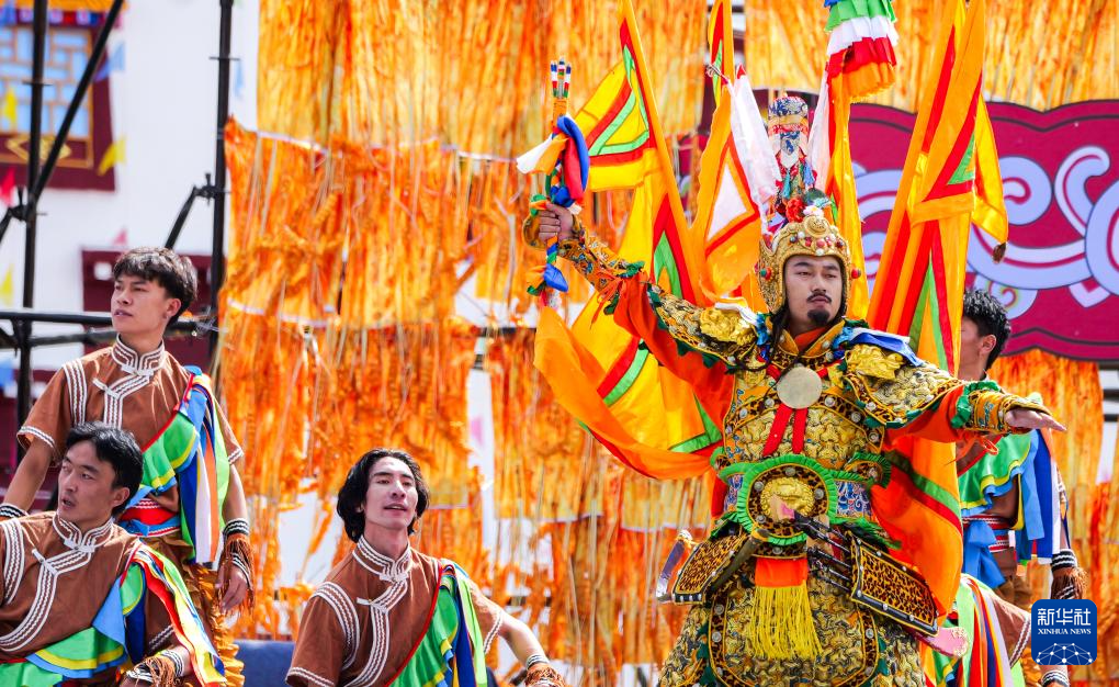 這是9月15日拍攝的開幕式上的格薩爾王舞蹈表演。新華社記者 格桑朗杰 攝