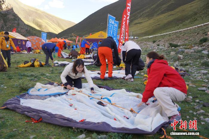 圖為徒步愛好者在楚布溝露營點搭帳篷。貢曲羅杰 攝