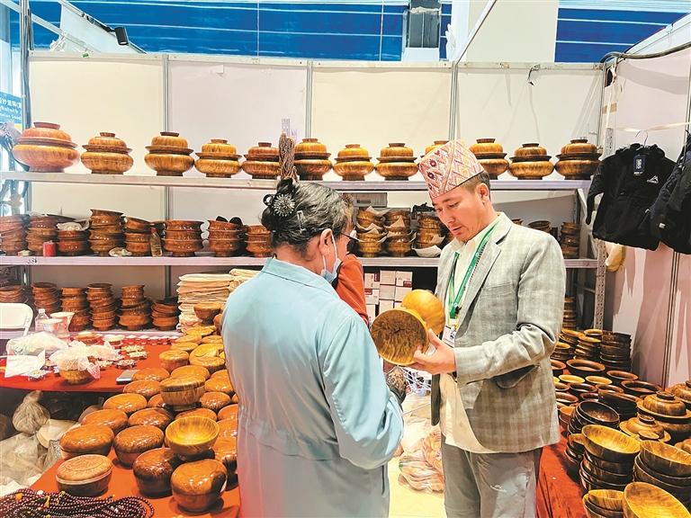 為期5天的博覽會現(xiàn)場熱鬧非凡。入口處,紅底黃字的“外貿優(yōu)品展銷”橫幅格外醒目:阿富汗商人正用不太流利的中文講解手工羊毛地毯的編織工藝;不丹展臺前,試穿傳統(tǒng)服飾的市民絡繹不絕;泰國膏藥展位的工作人員手持產品說明書,耐心地向顧客介紹使用方法;印度尼西亞展臺飄來咖啡焦香與伊朗藏紅花的辛香,幾位游客正輕嗅小瓷勺中的藏紅花;一旁的巴基斯坦玉石展臺前,觀眾正用手機拍攝玉飾的水波紋路,工作人員及時遞上放大鏡并介紹:“您看這紋路,是巴基斯坦特有的礦料形成的。”雙語講解聲、詢價議價聲、游客贊嘆聲交織在一起,宛如一場生動的“國際市集”。