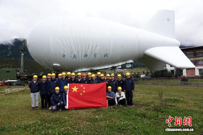 9月18日下午,“極目一號(hào)”浮空艇大氣觀測試驗(yàn)完成任務(wù)前相關(guān)測試工作,項(xiàng)目團(tuán)隊(duì)代表在現(xiàn)場合影。中新網(wǎng)記者 孫自法 攝