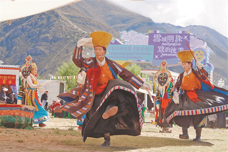 文化旅游節(jié)首場(chǎng)活動(dòng)“雪域明珠 戲韻流芳”藏戲?qū)?chǎng)表演。