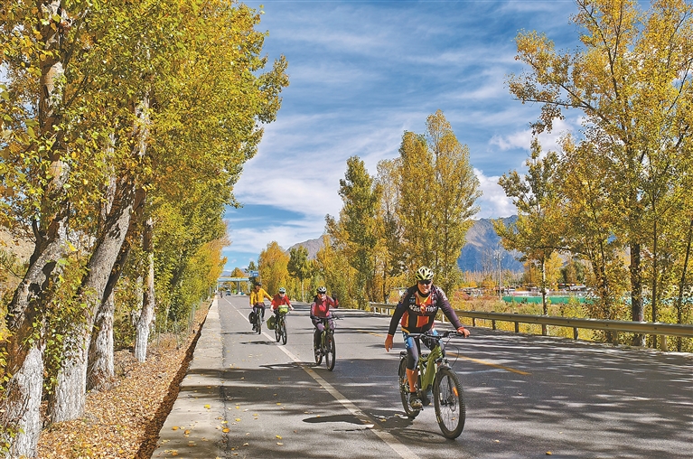 走出城區(qū),曲水縣與墨竹工卡縣的田園秋色漸次展開,大地流金。蜿蜒的公路間偶有自行車隊(duì)穿行,人影掠過,為寧?kù)o的秋日注入躍動(dòng)的氣息。