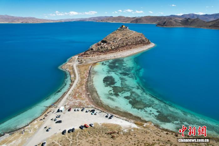10月25日,西藏羊卓雍錯日托寺風光。日托寺位于半島上,形成了“古剎”“孤寺”景觀,近年在網(wǎng)絡(luò)平臺持續(xù)火熱。(無人機畫面)中新社記者 江飛波 攝