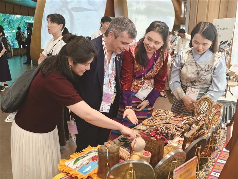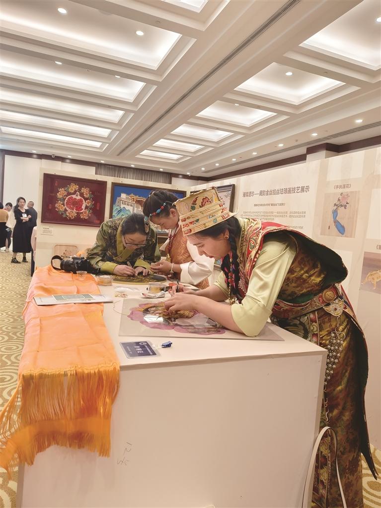 林芝市職業(yè)技術學?!安仨嵔鸾z掐絲琺瑯畫”應邀參加職業(yè)教育優(yōu)秀非遺教學成果展。本版圖由林芝市職業(yè)技術學校提供