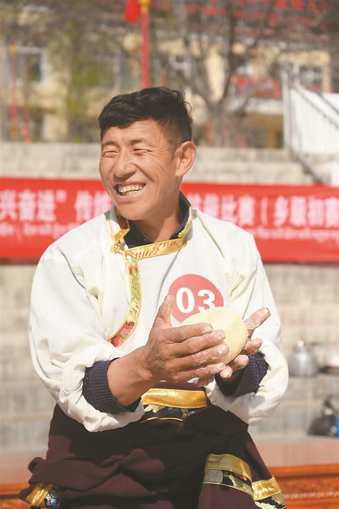 芒康縣朱巴龍鄉(xiāng)“紅色昌都 振興奮進(jìn)”活動(dòng)傳統(tǒng)生產(chǎn)生活技能酥油制作比賽。記者 歐珠次仁 攝