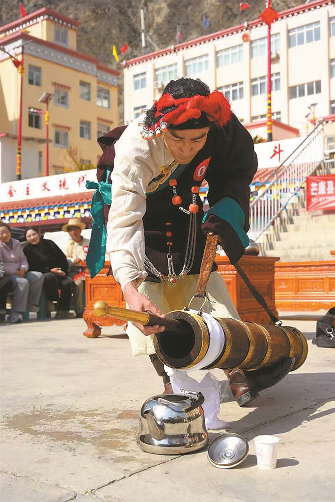 店主扎西旺堆熱情地向記者介紹店內(nèi)各種古樸美麗的物件,他說:“其實(shí),傳統(tǒng)酥油桶依然活躍在當(dāng)代生活中,在許多重大節(jié)日和場(chǎng)合,人們依舊會(huì)使用傳統(tǒng)酥油桶。因?yàn)樗粌H是酥油茶的制作工具,更是一種連接過去和現(xiàn)代的情感紐帶?,F(xiàn)在,越來越多的人開始重新關(guān)注酥油桶的使用,傳統(tǒng)酥油桶正在煥發(fā)屬于它的生機(jī)?!?/p>