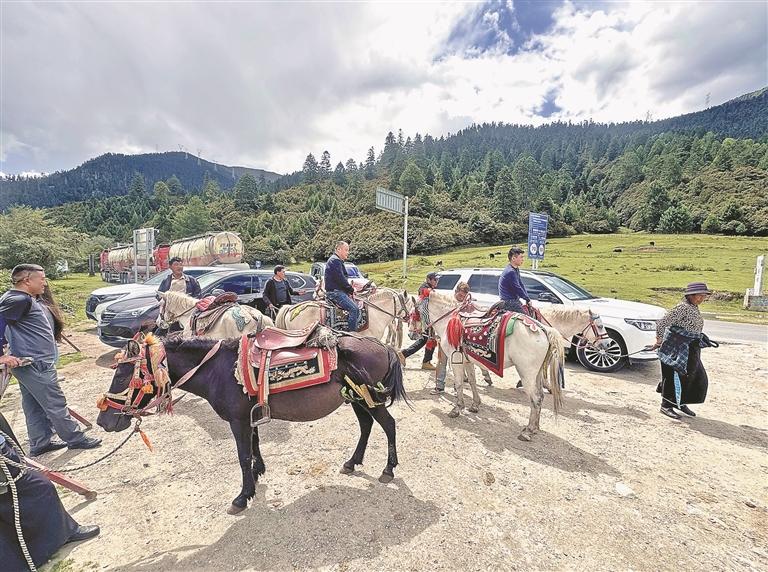 林芝市魯朗景區(qū)內(nèi),游客在體驗當(dāng)?shù)靥厣T馬項目。 記者 白瑪澤旺 攝