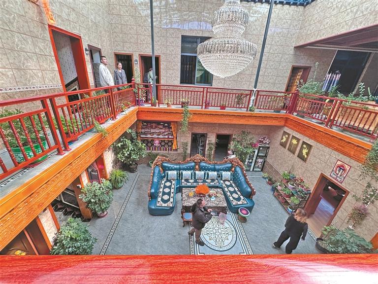 走進次仁措姆家院子里,她正在自家果園采摘剛成熟的石榴,房前的小院里整齊擺放著各種盆栽。“以前房前屋后雜物亂堆,經(jīng)過整治,空出的地方種上了蔬果,現(xiàn)在家家戶戶都有小果園,多虧了村里的整治行動?!贝稳蚀肽奉I著我們到客廳,指著墻上的“美麗庭院”流動紅旗笑著說:“這面旗是上個月評上的,現(xiàn)在村里都比著搞衛(wèi)生,誰也不想落后?!?/p>