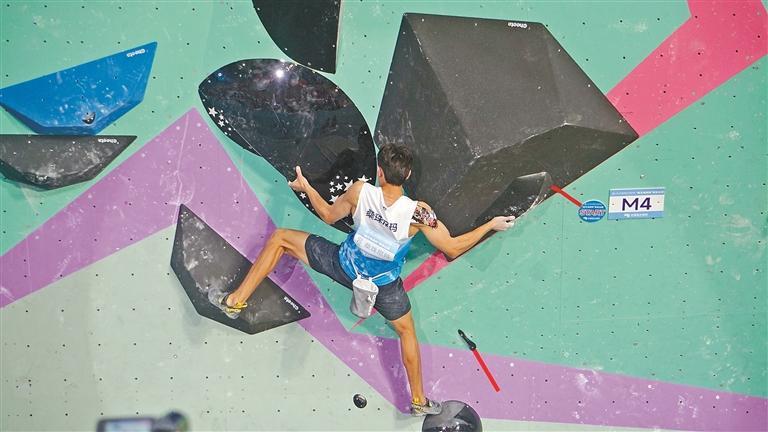 11月15日下午,第十五屆全國(guó)運(yùn)動(dòng)會(huì)攀巖比賽攀石決賽落下帷幕。西藏運(yùn)動(dòng)員桑珠尼瑪獲得男子組第7名。