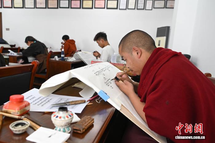11月23日,第二屆“工巧杯”西藏工藝美術(shù)中青年高技能人才技藝大賽現(xiàn)場實(shí)操技能在拉薩市唐卡藝術(shù)博物館開賽。本次大賽以“薪火相傳 守正創(chuàng)新”為主題,由284名選手來自西藏6(市)地的42個縣(區(qū)),涵蓋唐卡、雕塑、編織等36類工藝。據(jù)悉,西藏工藝美術(shù)行業(yè)現(xiàn)有2700余家市場主體、3.7萬余名從業(yè)者,2024年產(chǎn)值超30億元(人民幣)。圖為參賽選手在寫藏文書法。中新社記者 貢嘎來松 攝