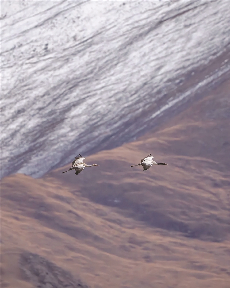 最初巡護時,沒有先進設(shè)備,全靠雙腳丈量、雙眼巡查,餓了啃干糧,冷了裹藏袍。如今保護力度加大,黑頸鶴數(shù)量逐年增長,越來越多村民也加入守護行列,沒人再驚擾這些“高原貴客”?!昂陬i鶴是吉祥象征,保護它們就是保護家園?!?5歲的頓珠次仁鬢角染霜,卻如他守護的老鶴般,初心未改。對他而言,黑頸鶴是“從小熟悉的老朋友”,林周既是自己的家,也是鶴群的家。這份守護,早已超越職責(zé),成為人與自然和諧共生的生動注腳。